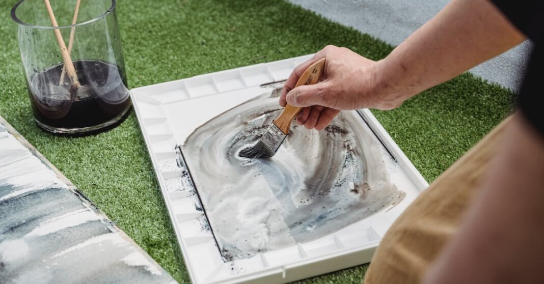 To get your kids ready for some fun watercolor time at the kitchen table, put down a layer of newspaper or a plastic tablecloth first. This protects your kitchen table and lets your kids’ creativity go wild, and you’re not stressing out about paint staining the table for years to come.